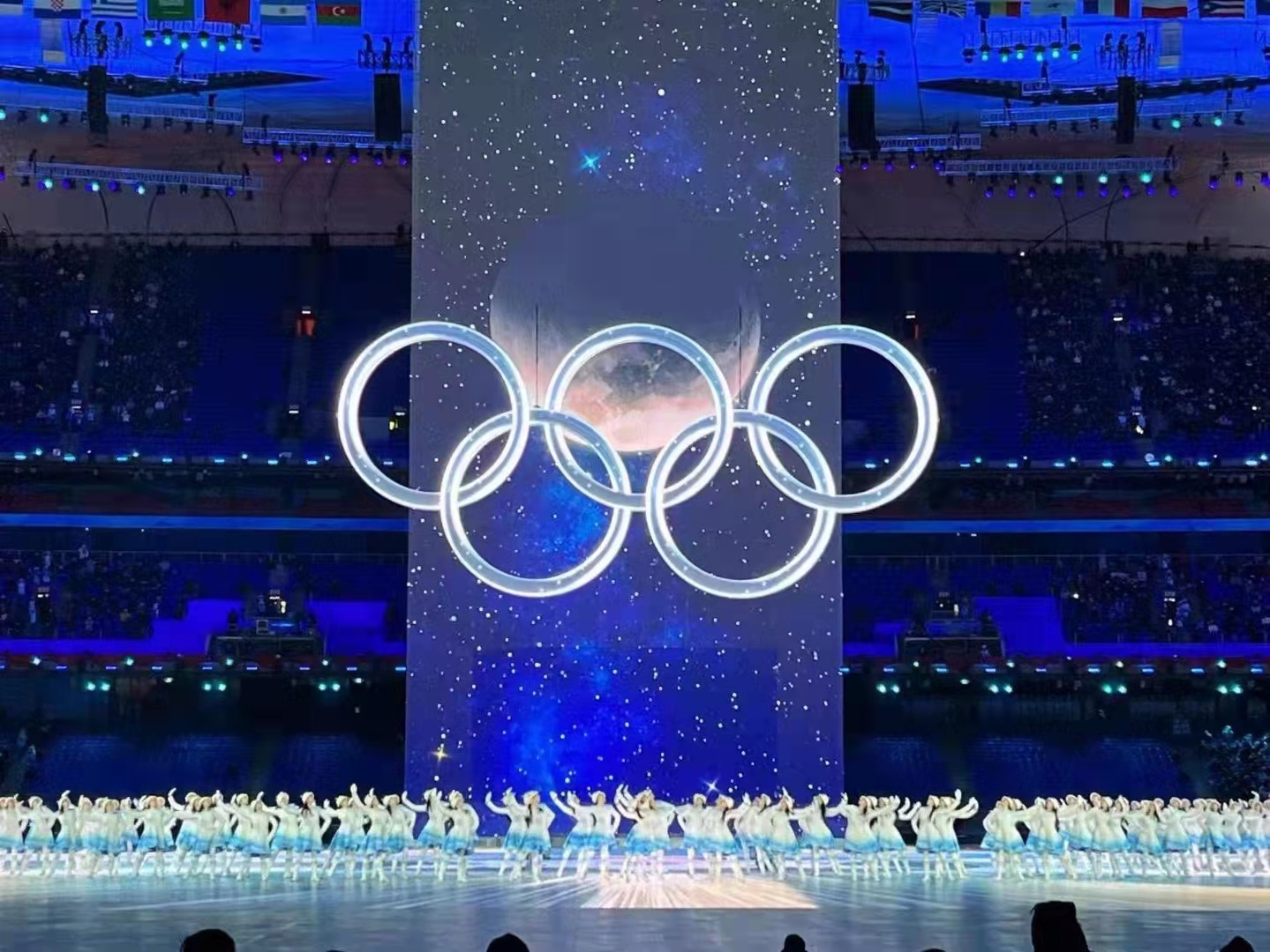 5分鐘時間,李昊瀅她們裝扮的96朵小雪花翩翩起舞構建成一朵巨大的雪花,表達了四海賓朋齊聚中國,萬邦協(xié)和的寓意。精彩的表演贏得來此起彼伏的掌聲,是對她們辛苦訓練幾個月最好的獎賞?;貞浧鹉情W耀的5分鐘,李昊瀅仍激動不已。
