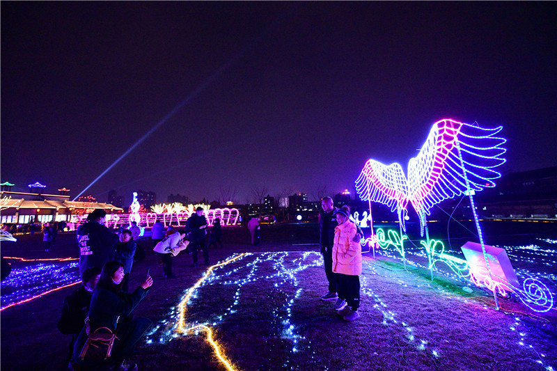 關(guān)帝廟東側(cè)綠地布滿各種彩燈造型
