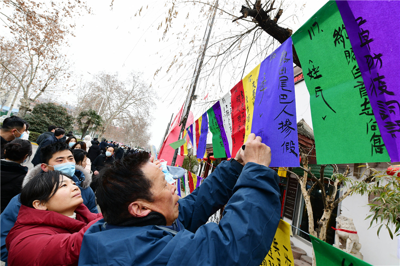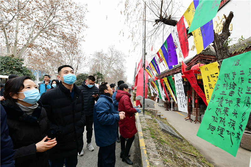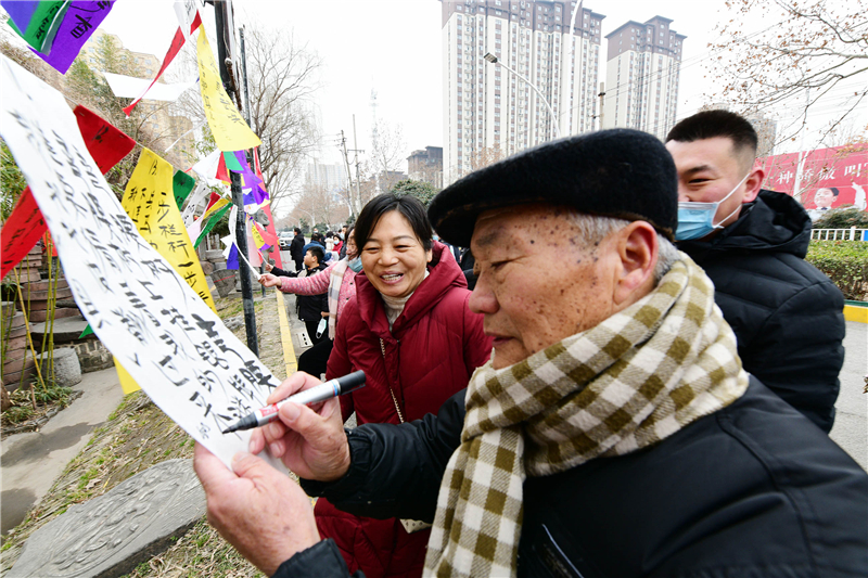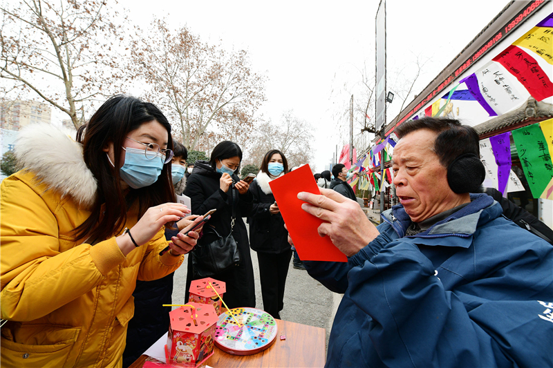 2月15日上午9時,由周口市文化廣電和旅游局、周口市文物局主辦,市博物館、市文物保護(hù)中心、市民協(xié)、華威民俗文化博物苑承辦,市民協(xié)燈謎學(xué)專委會、川匯區(qū)民協(xié)、川匯區(qū)燈謎學(xué)會協(xié)辦的元宵節(jié)燈謎競猜活動,主會場在市文化藝術(shù)中心廣場,分會場在華威民俗文化博物苑,吸引謎語愛好者踴躍競猜,甚為熱鬧。在華威民俗文化博物苑分會場的謎語現(xiàn)場,舉辦方以傳統(tǒng)形式進(jìn)行,備了300條謎語,用毛筆將謎語寫在紅藍(lán)綠白紙張上,懸掛門前,讓市民競猜,氣氛熱烈濃厚。舉辦方還特意準(zhǔn)備了跳繩、網(wǎng)球拍、乒乓球拍、飛鏢盤、跳棋等600份獎品,獎給猜中謎底的市民。①2