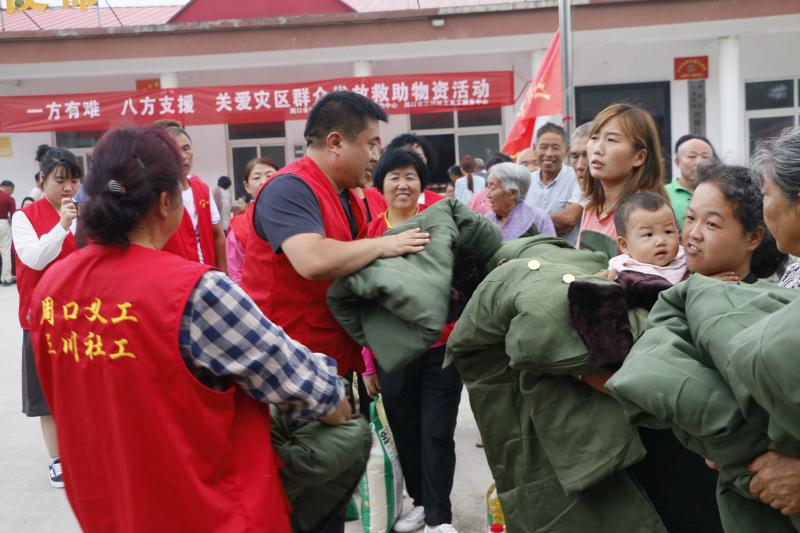去年7月底,面對(duì)來勢(shì)洶洶的雨情汛情,三川社工迅速反應(yīng),立即組建了由60名社工、義工組成的防汛救災(zāi)突擊隊(duì),連續(xù)10天在賈魯河沿岸3個(gè)村莊和二板橋段開展防汛值守;組織40名社工、義工裝卸防汛救災(zāi)物資,向川匯區(qū)、西華縣、扶溝縣30多個(gè)防汛值守點(diǎn)和居民安置點(diǎn)運(yùn)送食物和救災(zāi)物資。