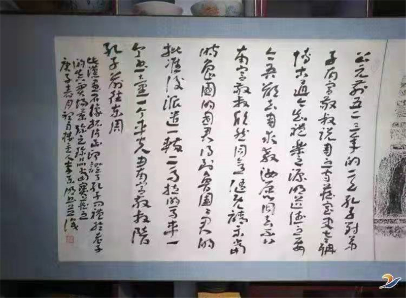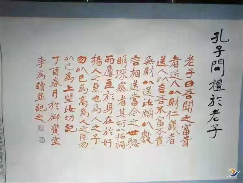 受周口市政協(xié)副主席、民盟周口市委會(huì)主委李寧委托,毛琦和民盟周口市屬六支部主委李莉代表民盟周口市委會(huì)向老子學(xué)院(博物館)捐贈(zèng)了漢代畫(huà)像石《孔子問(wèn)禮》拓片。