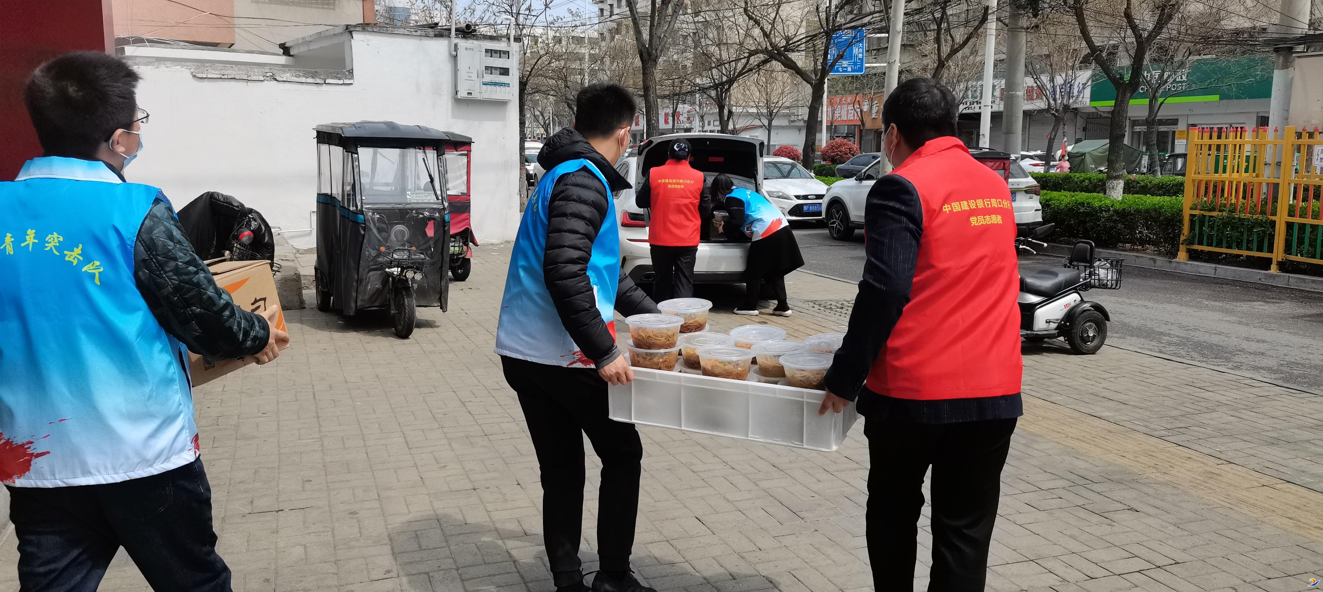 建行周口分行團委書記張聰穎說:“疫情發(fā)生后,我們建行就一直想為疫情防控貢獻力量,得知咱們的卡點工作人員吃飯成了問題,就組織我們的青年志愿者和愛心餐飲店一起開展了這次愛心送餐活動。我們將持續(xù)為抗擊疫情作出貢獻,也相信通過大家的共同努力,疫情會早日過去。”(周建行)②8