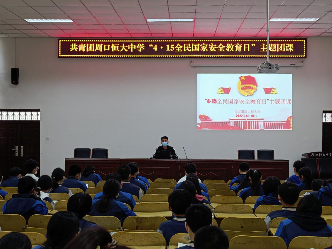 4月15日是第七個全民國家安全教育日。當(dāng)日,周口恒大中學(xué)舉辦“4·15全民國家安全教育日”主題團課,進一步推動總體國家安全觀和國家安全法律法規(guī)走入廣大團員青年,使國家安全意識深入人心。