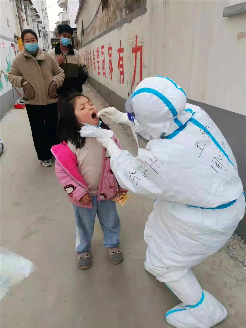 在太康戰(zhàn)“疫”中,第二醫(yī)療隊(duì)執(zhí)行的是封控區(qū)核酸采樣任務(wù)、應(yīng)急核酸采樣任務(wù),并兼做初篩陽(yáng)性患者復(fù)核采樣工作。在這披星戴月的14天里,王秀玲每天直面病毒,不分晝夜,轉(zhuǎn)戰(zhàn)于20多個(gè)封控區(qū),穿梭在人人避之不及的地方。她和隊(duì)員們每天手?jǐn)y采樣包、身穿防護(hù)服,哪里有需要就到哪里去,以沖刺的姿勢(shì)拼出了核酸采樣的“加速度”。14天共入戶核酸采集樣本8萬(wàn)余份,結(jié)合在太康工作經(jīng)驗(yàn),制定了《周口市中心醫(yī)院入戶核酸采集步驟和流程》,受到了上級(jí)領(lǐng)導(dǎo)的充分肯定,并被全市各地疫情防控指揮部推廣實(shí)施,為有效阻擊疫情蔓延貢獻(xiàn)了周口市中心醫(yī)院的智慧。③10