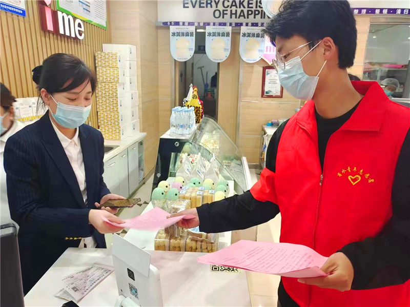 “你們辛苦了,來我們店疫情防控排查,我們會積極配合,落實好兩碼、測體溫、出入登記,”“謝謝你們提醒,我們會積極配合,”“有你們青年志愿者為我們保駕護航真是太好了!”各轄區(qū)商戶們紛紛給予青年志愿者們肯定和感謝。在宣傳過程中,志愿者們主動為沒有攜帶口罩的群眾發(fā)放口罩,引導(dǎo)群眾健康防護習(xí)慣。