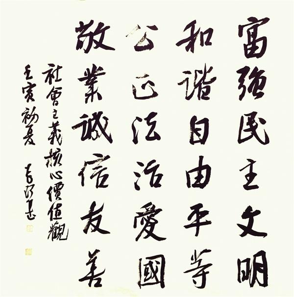 編者按:墨香浸潤沙潁河畔,筆力雄健魅力三川。為大力弘揚(yáng)和培育社會(huì)主義核心價(jià)值觀,傳承周口地域文化特質(zhì)和精神標(biāo)識(shí),日前,周口市文明辦、周口市文學(xué)藝術(shù)界聯(lián)合會(huì)、周口市書法家協(xié)會(huì)通過周口報(bào)業(yè)傳媒集團(tuán)發(fā)出“作品征集令”,擬舉辦社會(huì)主義核心價(jià)值觀暨“道德名城”名家書法作品展。作品征集啟事發(fā)出后,周口籍書法名家及廣大書法愛好者紛紛投來精彩紛呈的書法作品,體現(xiàn)對社會(huì)主義核心價(jià)值觀的深刻理解,展示“道德名城、魅力周口”建設(shè)成果,講好周口故事,展現(xiàn)周口形象。今天起,本報(bào)特開設(shè)《社會(huì)主義核心價(jià)值觀暨“道德名城”名家書法作品》專欄,陸續(xù)刊發(fā)優(yōu)秀書法作品,以此營造弘揚(yáng)和踐行社會(huì)主義核心價(jià)值觀的良好氛圍,用傳統(tǒng)書法技藝展現(xiàn)優(yōu)秀歷史文化資源,為“道德名城”增光添彩。敬請關(guān)注。