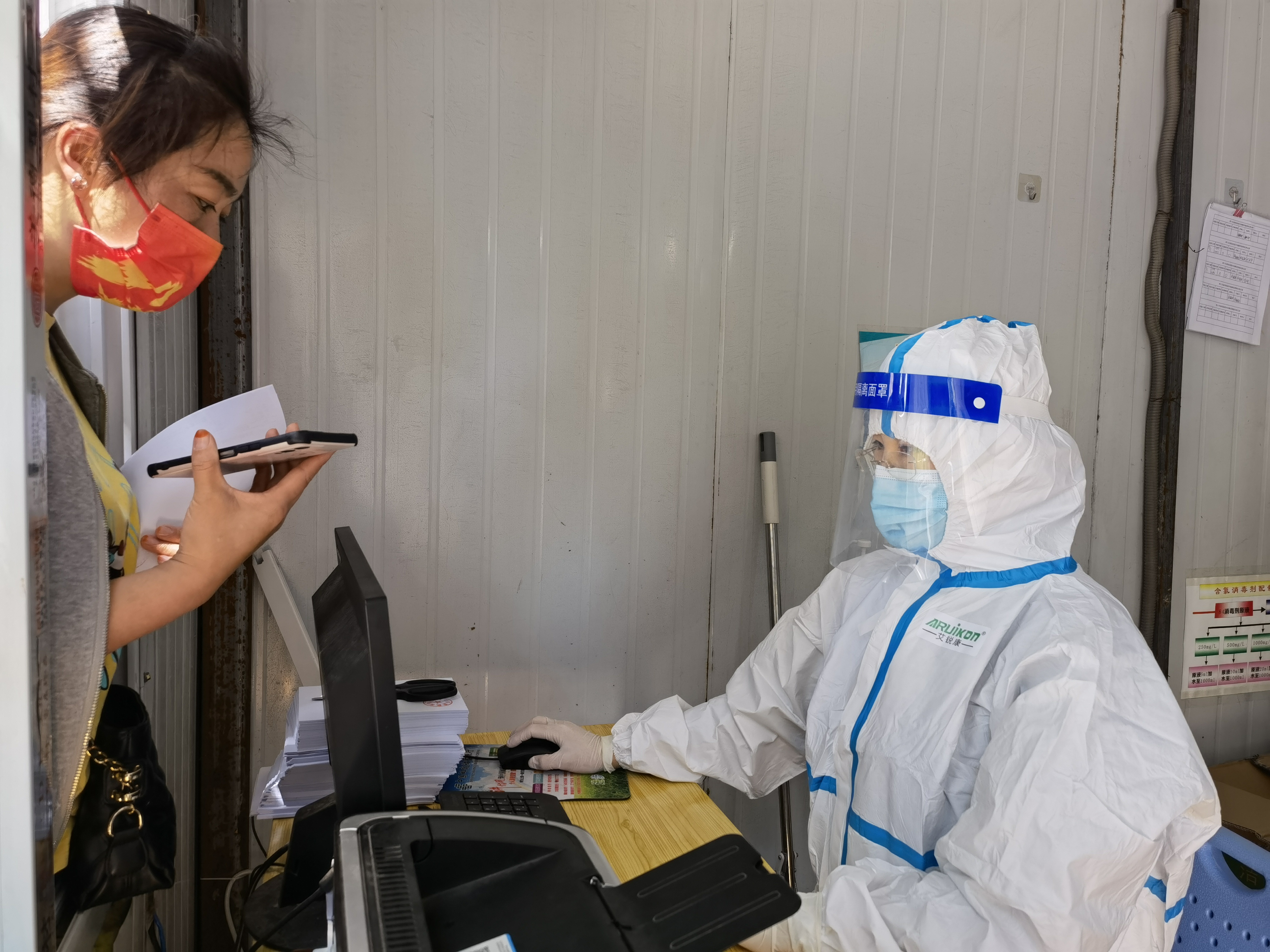 5月4日,記者在周口東新醫(yī)院核酸檢測點(diǎn)見到了全副“武裝”的王琳,她坐在核酸檢測點(diǎn)的核酸檢測報(bào)告打印崗位上,身穿防護(hù)服,認(rèn)真細(xì)致為需要幫助的群眾打印報(bào)告?!按蟮杰囕v安排,小到口罩發(fā)放、體溫計(jì)調(diào)配等防護(hù)物資保障都要協(xié)調(diào)統(tǒng)籌,一刻也不能停歇,我就想著別有什么地方落下了。安排好一切后,我回到醫(yī)院,同事們都前往全員核酸檢測一線了,這里人手不太足,我頂上。做好后勤保障工作,解決一線醫(yī)護(hù)人員的后顧之憂是我的責(zé)任和義務(wù)。”王琳說。