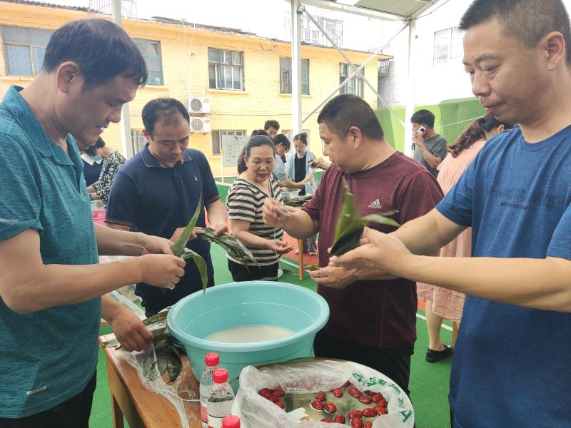 朗誦活動結(jié)束后,工作人員和軍休人員進行了包粽子活動。精心準備好的糯米、大棗、花生、粽葉等擺放整齊,大家熱情高漲,積極參與,一起動手卷粽葉、填糯米、放紅棗、放花生。一個個棱角分明的粽子,寄托了軍休人對黨和國家的深切祝福,也表達了對端午文化的熱愛與傳承。比速度、比質(zhì)量、比好看,一陣歡聲一陣笑語,不一會兒已經(jīng)包好了幾大盆。