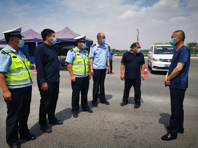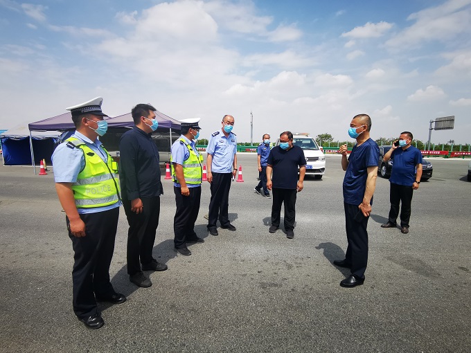 岳備戰(zhàn)一行先后到譚莊高速路口執(zhí)勤卡點(diǎn)、商南高速路口執(zhí)勤點(diǎn)看望慰問(wèn)值班民輔警及防疫工作人員,并送上慰問(wèn)品。在卡點(diǎn),岳備戰(zhàn)詳細(xì)檢查了各項(xiàng)防疫工作落實(shí)情況,為在一線(xiàn)的防疫人員送去節(jié)日祝福及慰問(wèn)品,感謝他們用實(shí)際行動(dòng)詮釋擔(dān)當(dāng)精神、奉獻(xiàn)精神,對(duì)大家頂著烈日?qǐng)?jiān)守在防疫一線(xiàn),為廣大百姓的生命安全保駕護(hù)航。同時(shí)他強(qiáng)調(diào)大家要時(shí)刻保持臨戰(zhàn)狀態(tài),以高度的責(zé)任感,堅(jiān)定的信心和有力的舉措,站好崗、履好職,扎實(shí)做好疫情防控各項(xiàng)工作,全力守護(hù)百姓生命健康安全。