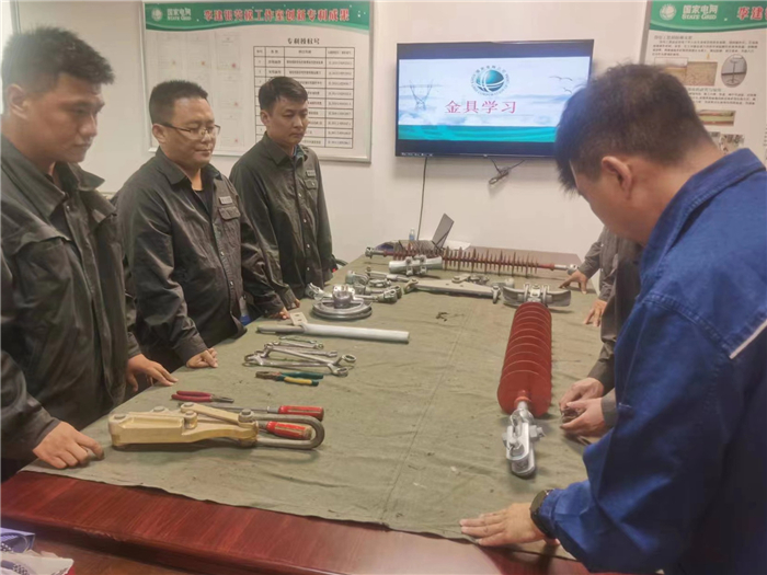 學(xué)習(xí)中,該公司輸電運(yùn)維支撐中心五級職員鄧建國向大家講解了常用輸電線路金具的種類及用途,包括絕緣子、懸垂線夾、連接工具的介紹和使用。