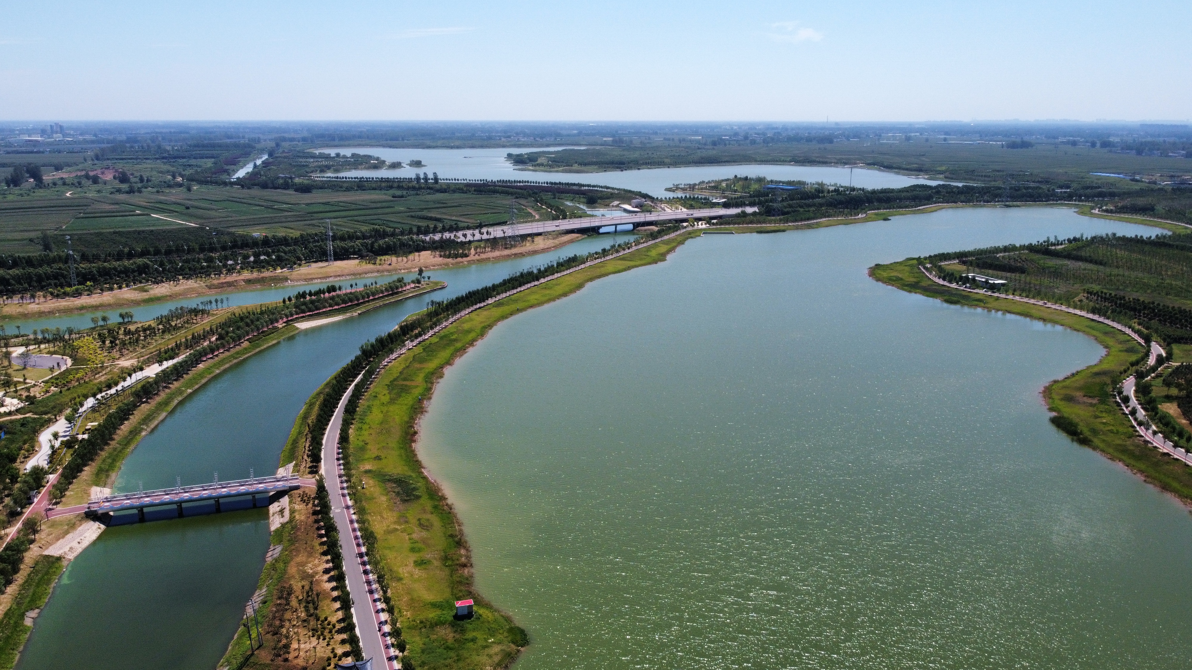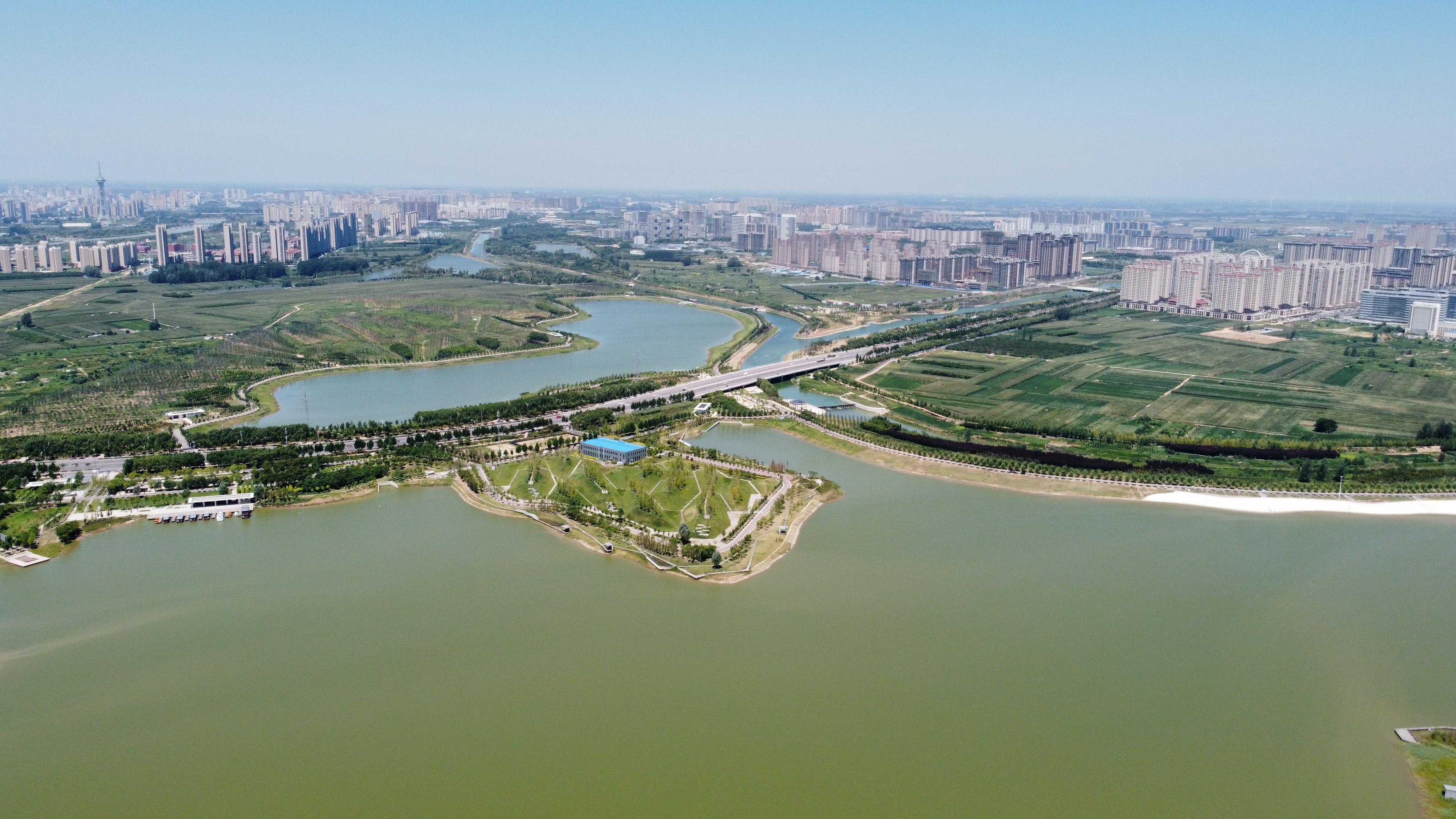 在周淮鐵路以東、大廣高速以西、流沙河以南、沙潁河以北,有一座集“灌溉調蓄、區(qū)域排澇、水質保護、親水生態(tài)”于一體,融合“水安全、水環(huán)境、水文化、水經濟”的綜合性基礎設施——永寧湖濕地公園。作為引黃調蓄項目,永寧湖濕地公園是中心城區(qū)十大民生工程之一,是周口市應急備用水源地,主要功能為農業(yè)灌溉調蓄,同時兼顧生態(tài)環(huán)境改善。永寧湖周邊同時規(guī)劃有一大批地標性建筑,項目建成后,不僅能完善新區(qū)功能、提升城市形象,還能實現旅游產品與城市生活自然融會貫通,讓市民與游客共享濱水城市之美。①9 周口日報·周道客戶端記者 劉俊濤 攝