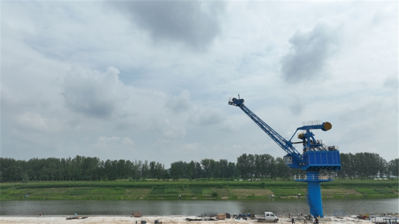 藍(lán)天白云的映襯下,40多米高、通體天藍(lán)色的固定吊如同挺拔的少年站立在太康港區(qū)馬廠作業(yè)區(qū)上。港口施工方、南京港機(jī)重工制造有限公司太康馬廠項(xiàng)目經(jīng)理姜吉山告訴記者:“這個(gè)固定吊是近兩年新上的大型起吊設(shè)備,是太康港區(qū)的施工重難點(diǎn),因?yàn)楦叨雀?、有分量、?duì)操作技術(shù)要求高,安裝穩(wěn)定度決定后續(xù)使用時(shí)的吊裝質(zhì)量。額定起重重量10噸,到時(shí)能兼顧兩個(gè)泊位的貨物裝卸,更加靈活。”除了技術(shù)要求,太康港區(qū)馬廠作業(yè)區(qū)的建材基本用環(huán)保綠色材料建成,建造過(guò)程中合理規(guī)劃減少損耗,充分踐行低碳環(huán)保理念,實(shí)現(xiàn)“綠色港口”建設(shè)目標(biāo)。