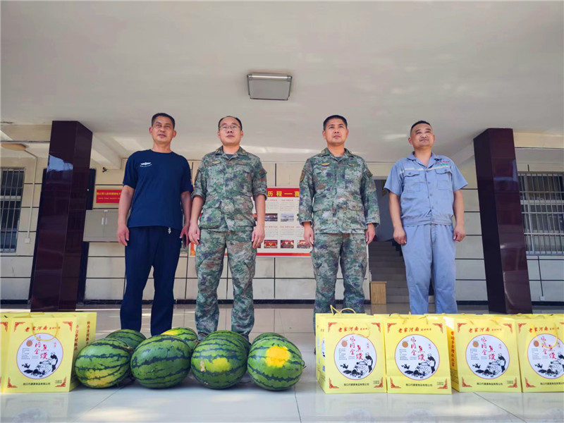 立秋過后,室外溫度依然高達(dá)39攝氏度,人們都躲在室內(nèi)開著空調(diào)或吹著風(fēng)扇享受著清涼。此時,淮陽區(qū)人武部大院門口,一中年男子把車上所裝的“淮寶牌”焦饃等慰問品卸下后,徑直走進(jìn)區(qū)人武部政委劉鋒辦公室。