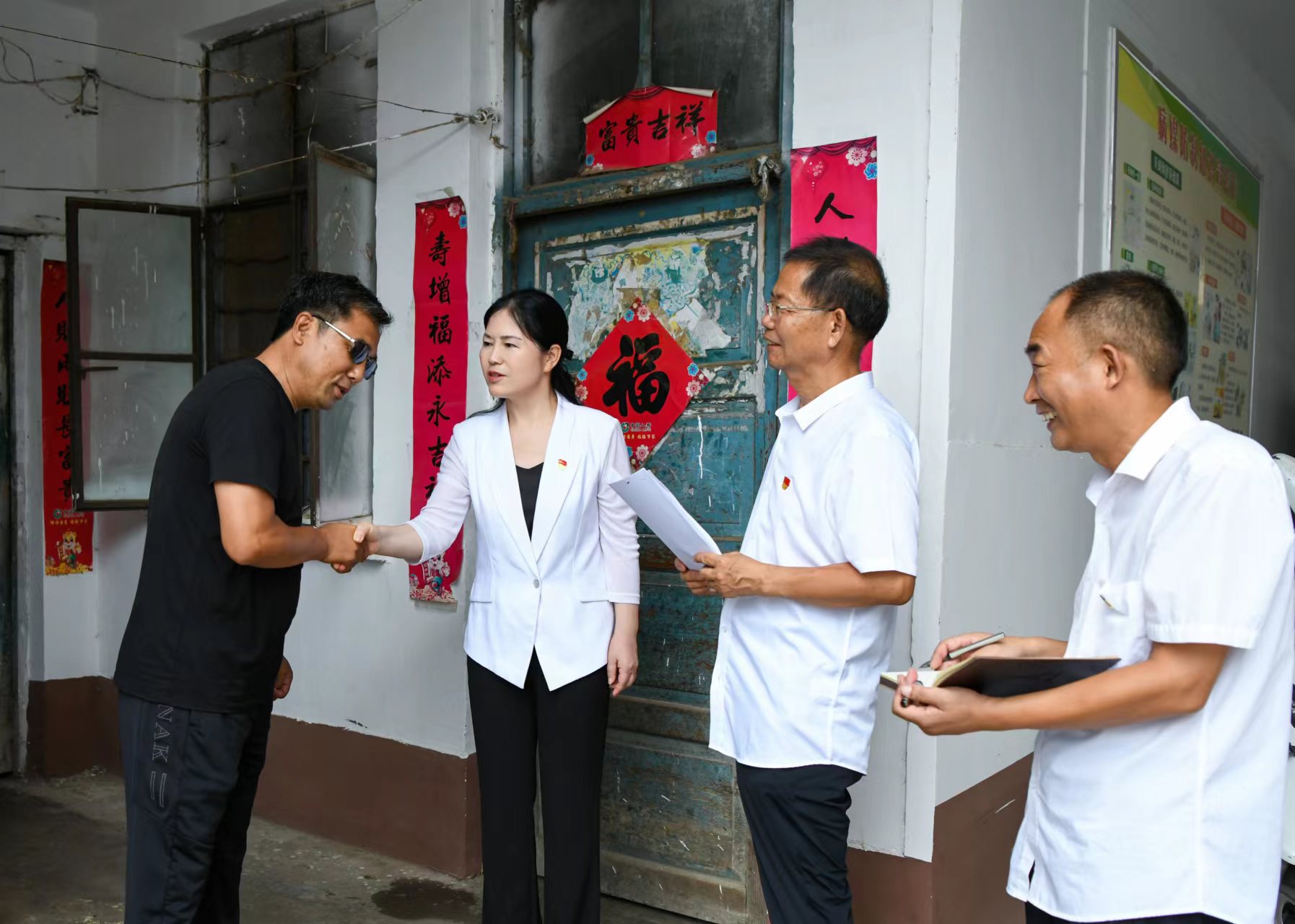 2022年1月30日,淮陽(yáng)區(qū)一房地產(chǎn)項(xiàng)目因拖欠農(nóng)民工工資導(dǎo)致來(lái)自四川、湖北、河南信陽(yáng)的300多名農(nóng)民工到區(qū)信訪(fǎng)局上訪(fǎng)。由于春節(jié)臨近,人員難找,問(wèn)題遲遲得不到解決,農(nóng)民工情緒非常激動(dòng),揚(yáng)言要圍堵區(qū)委、區(qū)政府。王瑞霞主動(dòng)擔(dān)當(dāng),一邊與農(nóng)民工代表談心,一邊與相關(guān)部門(mén)溝通,召集住建、人社、公安等部門(mén)與開(kāi)發(fā)商、建筑商召開(kāi)協(xié)調(diào)會(huì)。經(jīng)過(guò)連續(xù)15個(gè)小時(shí)的交涉,問(wèn)題得到妥善解決,成功將560余萬(wàn)元工資以微信轉(zhuǎn)帳的形式發(fā)放到農(nóng)民工的賬戶(hù)。次日清晨,領(lǐng)到工資的農(nóng)民工把區(qū)信訪(fǎng)局接待中心打掃得干干凈凈,還貼上了春聯(lián)。幾個(gè)農(nóng)民工眼里含著熱淚說(shuō):“王局長(zhǎng)連夜為我們要回了工資,我們終于能回家過(guò)年了,買(mǎi)錦旗來(lái)不及,我們只有通過(guò)這種方式來(lái)表達(dá)謝意!”