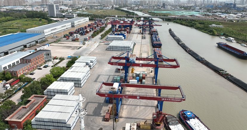 繁忙的淮安港。在自動(dòng)化集裝箱碼頭,貨船頻繁進(jìn)出,集裝箱不斷被起重機(jī)吊起、裝運(yùn),繁榮忙碌而又秩序井然。據(jù)了解,目前淮安全市碼頭岸線28公里,港區(qū)7個(gè)、碼頭116座、泊位389個(gè),其中千噸以上泊位92個(gè),年設(shè)計(jì)吞吐能力1.1億噸,其中集裝箱碼頭吞吐能力50萬標(biāo)箱。2021年,淮安被交通運(yùn)輸部確定為“全國內(nèi)河主要港口”。運(yùn)行內(nèi)河集裝箱航線14條,上游覆蓋河南周口、山東、湖北、安徽等地,下游通達(dá)銜接江蘇沿江沿海、上海等地。2021年完成集裝箱吞吐量31.07萬標(biāo)箱。