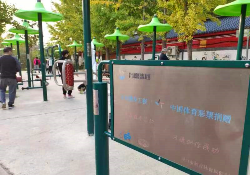 圖為周口市區(qū)廣場上由體彩公益金捐贈的體育器材