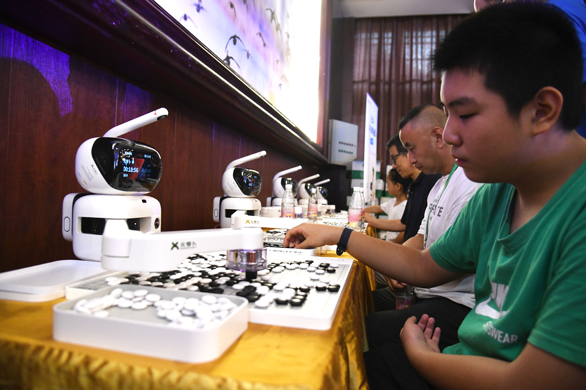 ?8月15日上午,圍棋棋手們在賽事間隙,和機(jī)器人對弈,增添不少樂趣。在2023中國淮陽第二屆“荷花杯”全國業(yè)余圍棋公開賽的賽場邊,賽事方特意擺放五部圍棋機(jī)器人,供棋手們在賽事之余娛樂。工作人員介紹,這些圍棋機(jī)器人很強(qiáng)大,不上網(wǎng)聯(lián)機(jī)的情況下,它們具有業(yè)余圍棋三段水平,如果上網(wǎng)聯(lián)機(jī),則具有職業(yè)九段能力,人機(jī)大戰(zhàn),棋手們未必能贏了機(jī)器人。