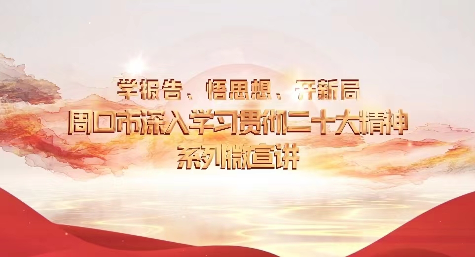 為深入學(xué)習(xí)貫徹黨的二十大精神,中共周口市委宣傳部、中共周口市委黨校和周口報(bào)業(yè)傳媒集團(tuán)共同制作“學(xué)報(bào)告 悟思想 開新局”系列宣講微視頻,將分專題陸續(xù)推出。