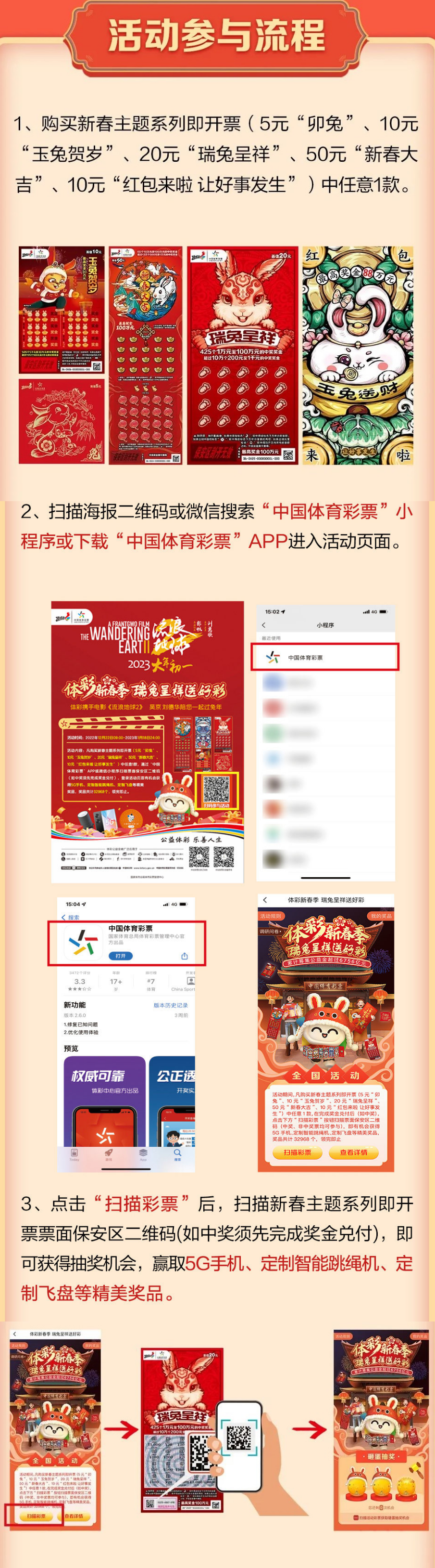 2.“體彩新春季”全國促銷活動(dòng)細(xì)則詳見“中國體育彩票”微信小程序或“中國體育彩票”APP活動(dòng)頁面,或登錄中國體彩網(wǎng)查詢相關(guān)信息。
