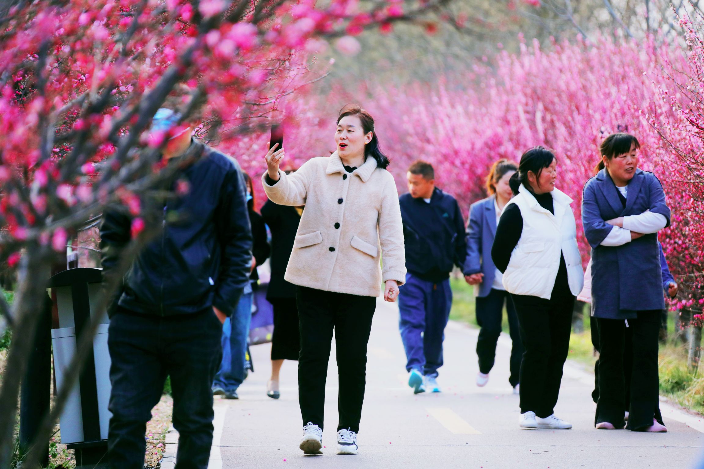 連日來,長(zhǎng)達(dá)十里的桃花長(zhǎng)廊,每天吸引著眾多市民前來踏青賞花、拍照留念。人們?cè)谫p花的同時(shí),陶冶了心情,鍛煉了身體,收獲了愉悅。①2