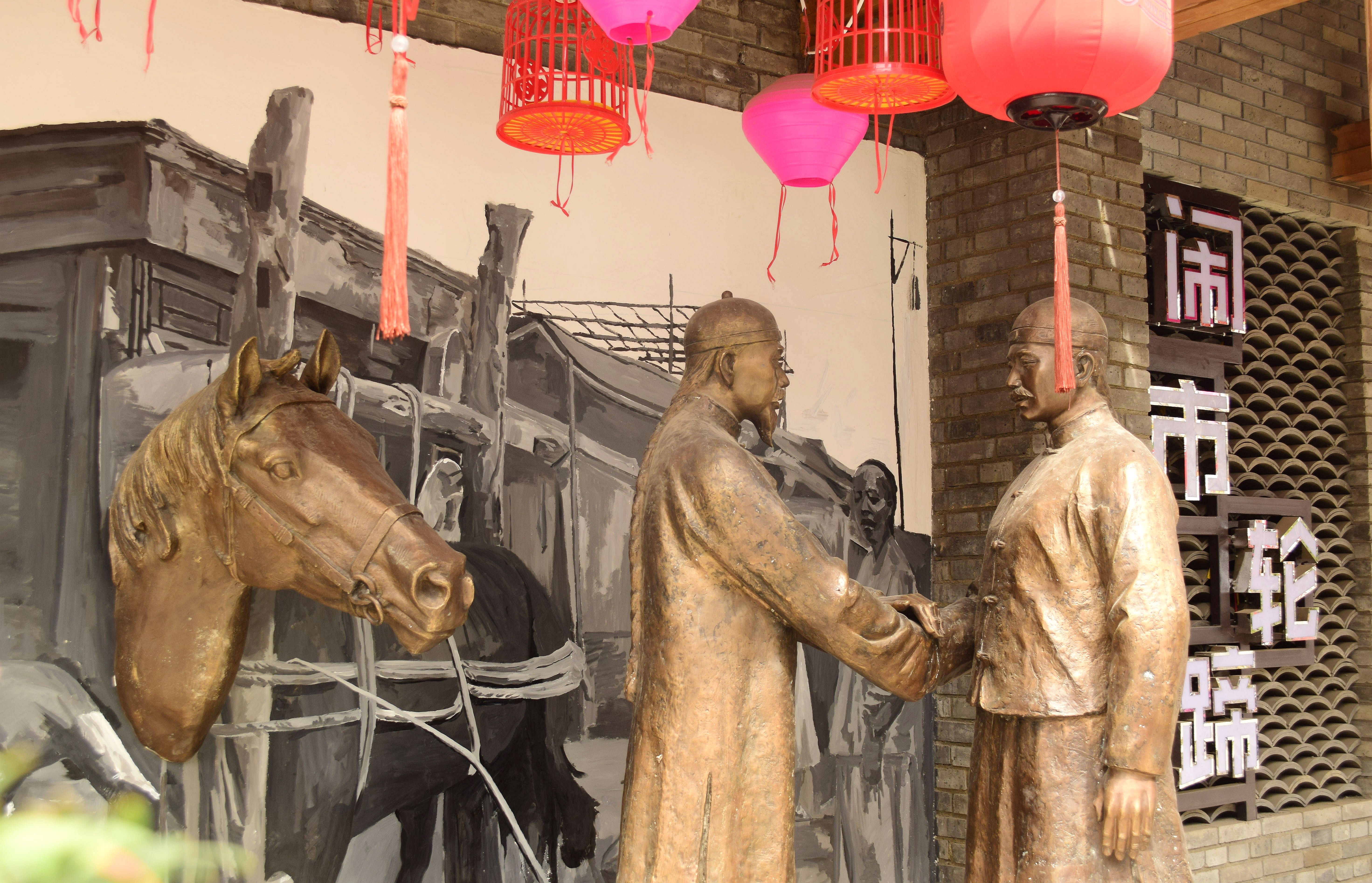荷花街“鬧市輪蹄”雕塑展現(xiàn)古街歷史風(fēng)貌