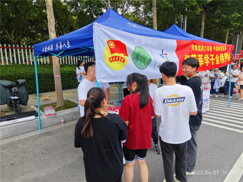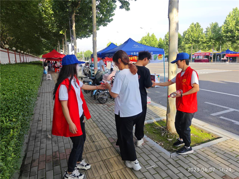 6月7日上午,一年一度的高考如期進(jìn)行。為助力學(xué)子順利考試,奉獻(xiàn)社會愛心,河南省體育彩票管理中心周口分中心聯(lián)合共青團(tuán)周口市委,在周口市文昌中學(xué)考點(diǎn)設(shè)立服務(wù)站點(diǎn)開展愛心助考活動(dòng)。