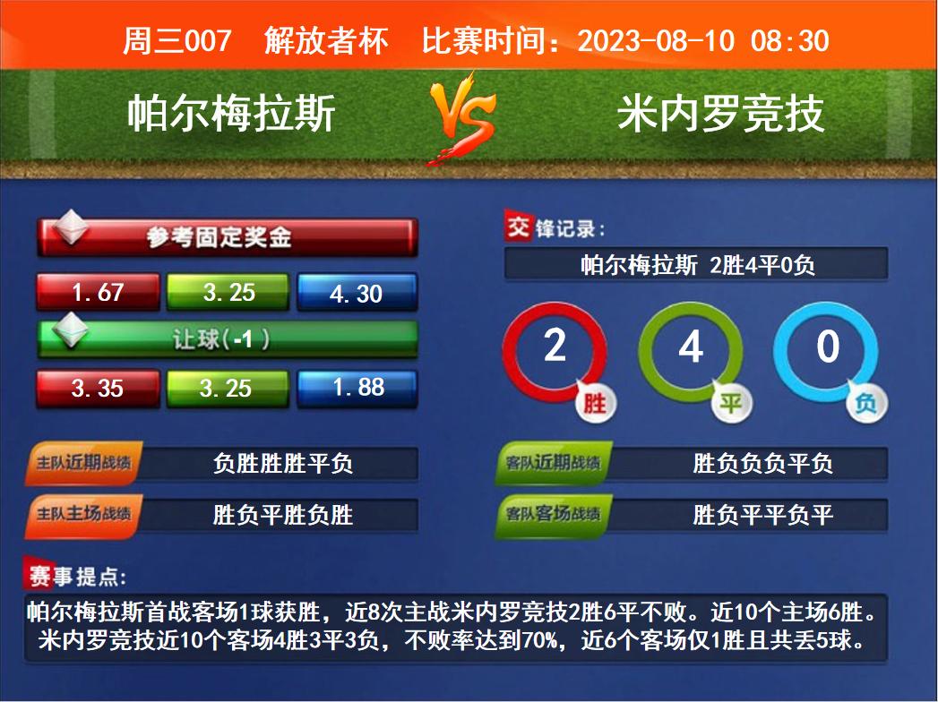 周三007 解放者杯 帕爾梅拉斯VS米內(nèi)羅競技