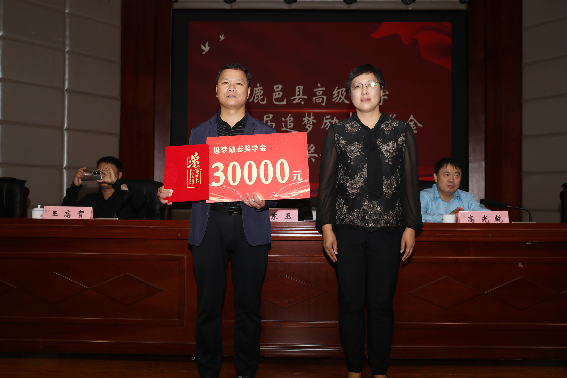 據(jù)了解,鹿邑縣高級中學追夢勵志獎學金是2022年由優(yōu)秀校友、暨南大學教授王高賀發(fā)起,部分校友和社會愛心人士自愿捐贈資金,在學校設(shè)立的勵志獎學金,用于獎勵母校優(yōu)秀的學生和教師團隊。此次頒獎儀式共頒發(fā)獎學金11萬元,周樂樂、張逍遙等40位同學和高小飛、毛東方等6個班級教師團隊獲得追夢勵志獎學金。在2023年高考中,陳孟康同學被北京大學飛行員班錄取,北清部全體教師獲得3萬元名校獎。