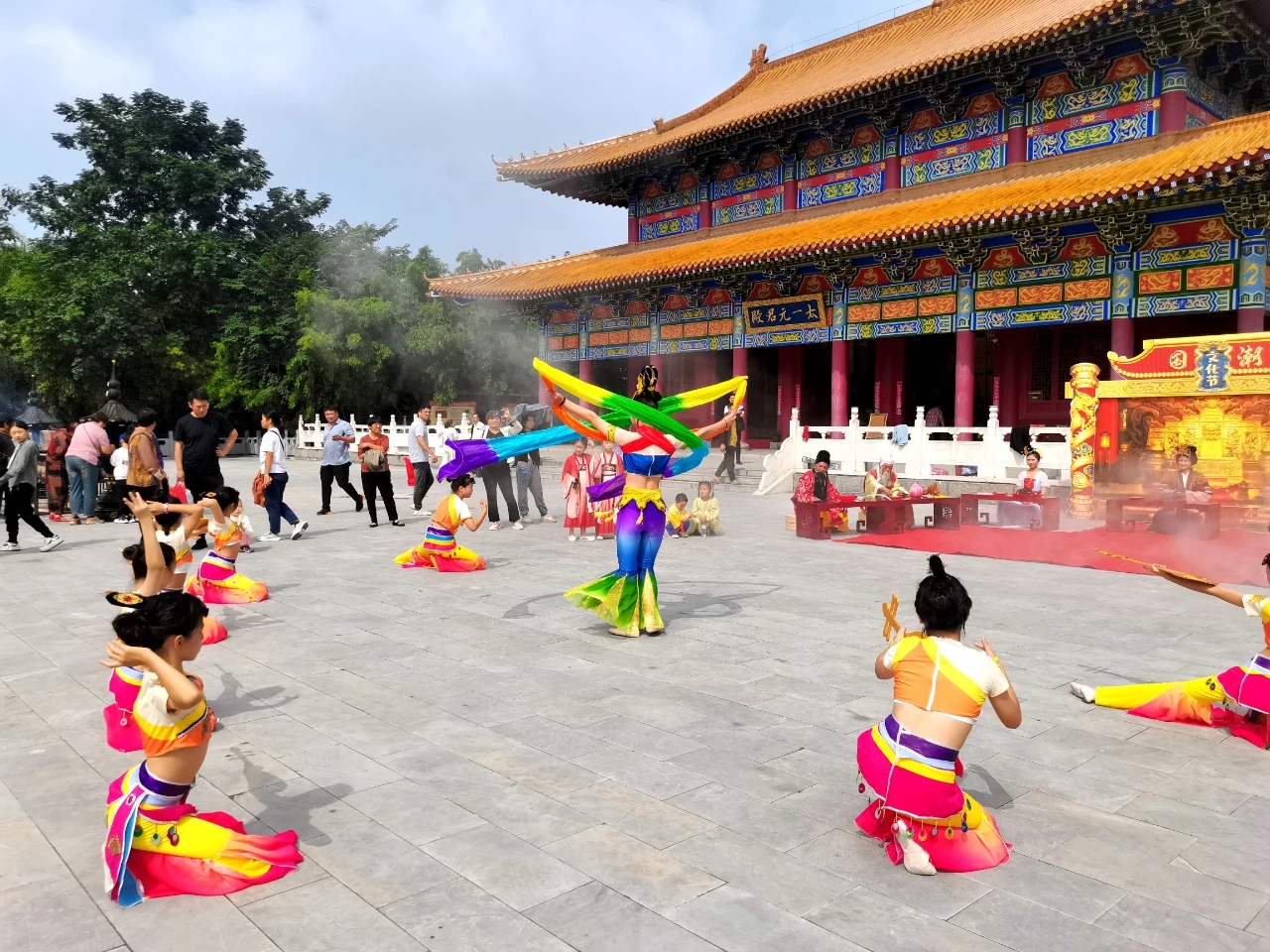 在太極殿前,一場(chǎng)場(chǎng)精彩的文藝匯演迎來(lái)熱烈的掌聲,歌曲、評(píng)書(shū)、雙簧、薩克斯走秀等節(jié)目齊聚一堂,呈現(xiàn)出百家爭(zhēng)鳴之勢(shì),將節(jié)目推向高潮。