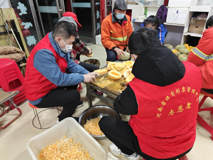 第二日早晨5點,周口體彩4名志愿者來到“東方愛心粥屋”開展志愿服務(wù),洗菜、切菜、炒菜、熬粥……大家有條不紊地準備著早飯。“我們掃地起得很早,來到這吃碗熱粥,更有干勁了。”“志愿者真貼心,熱粥熱菜的,感覺很幸福?!闭诔栽顼埖沫h(huán)衛(wèi)工人你一言我一語、贊聲一片。