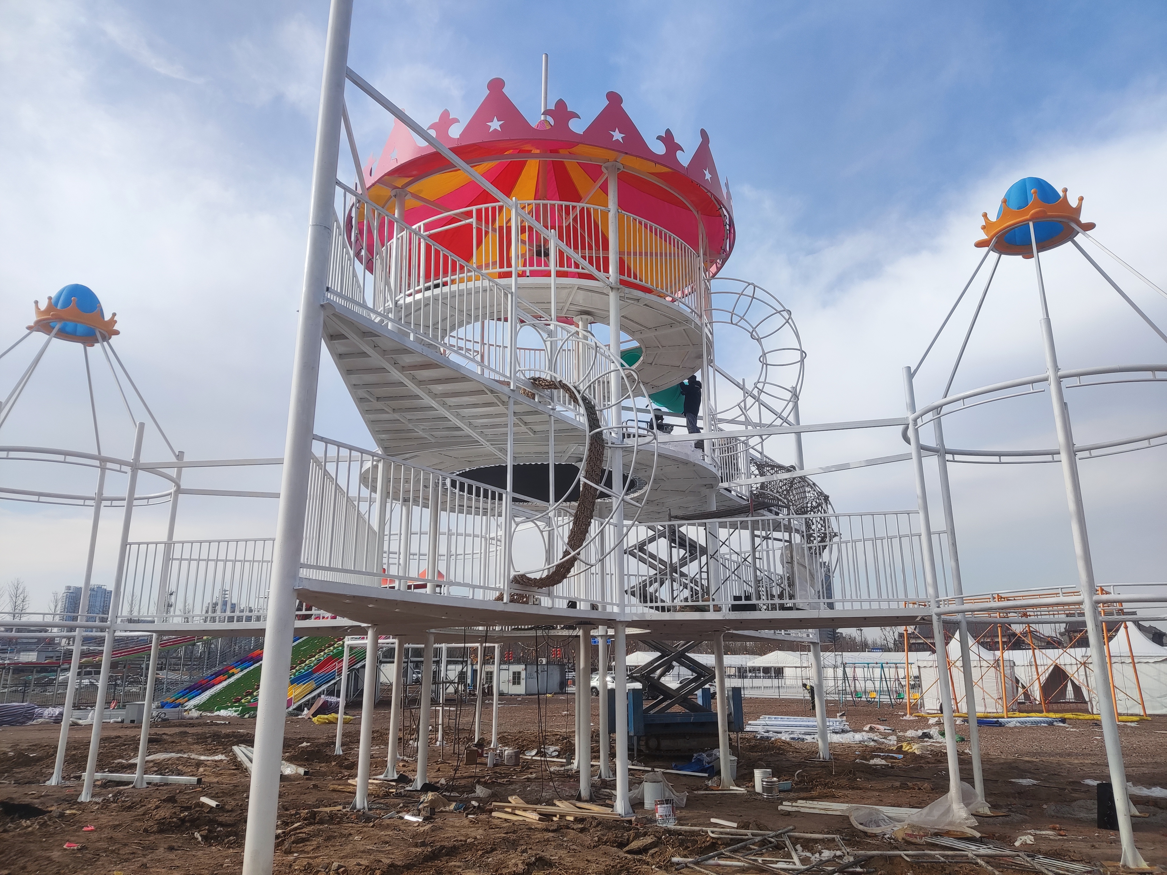 1月23日記者在現(xiàn)場看到,展區(qū)大篷內(nèi),工人正在做水電安裝、焊接等掃尾工作。