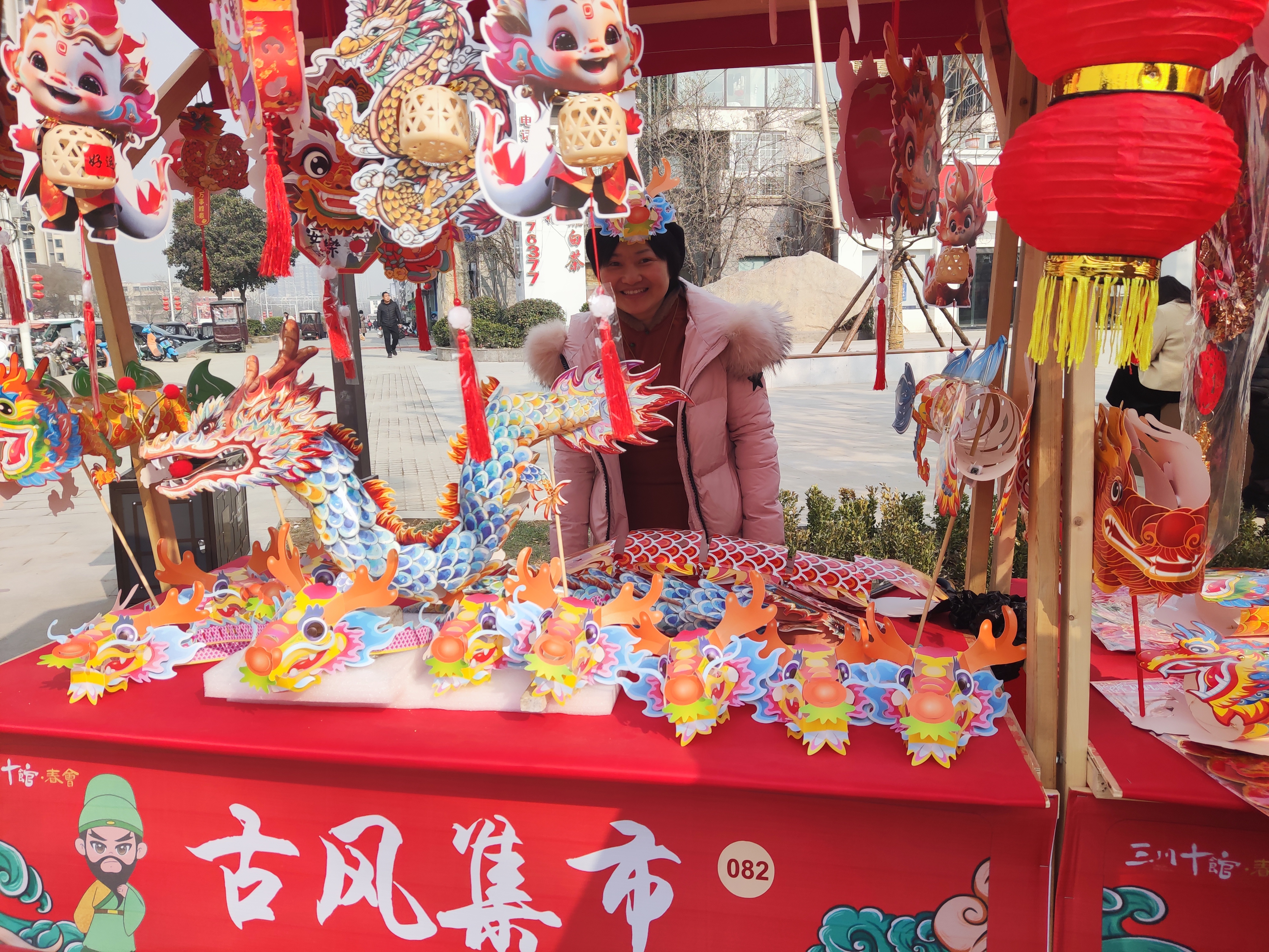 2月12日,關(guān)帝廟歷史街區(qū)的“古風(fēng)集市”上,人來(lái)人往、熙熙攘攘,布老虎、泥泥狗、剪紙、糖人等具有周口特色的非遺產(chǎn)品烘托出濃濃的年味,吸引大量游客前來(lái)欣賞、購(gòu)買(mǎi)。