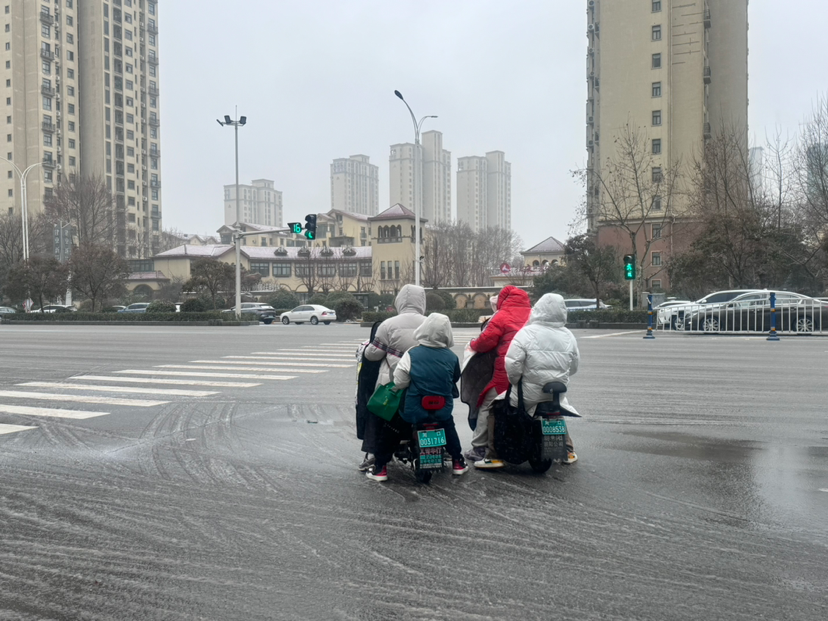 記者在周口大道看到,過(guò)往車輛紛紛拉開車距、緩慢通行,騎電動(dòng)車的市民大多戴上了帽子、裹緊了身上的棉衣,過(guò)往行人撐著雨傘、頂著寒風(fēng)匆匆趕路。