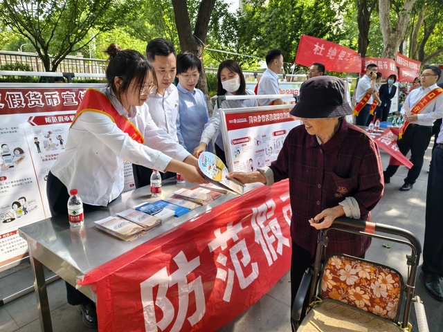 活動(dòng)當(dāng)天,該行組織員工前往五一廣場(chǎng)開(kāi)展集中宣傳,通過(guò)設(shè)置宣傳咨詢臺(tái),懸掛橫幅,向群眾發(fā)放反假幣、愛(ài)護(hù)人民幣和打擊假幣犯罪宣傳折頁(yè),普及數(shù)字人民幣知識(shí),宣傳人民幣防偽知識(shí)和識(shí)別假幣騙局,傳遞“防范假幣,保護(hù)自我”理念。針對(duì)老年客戶風(fēng)險(xiǎn)意識(shí)和識(shí)假能力不足問(wèn)題,該行開(kāi)展“一對(duì)一,手把手”現(xiàn)場(chǎng)教授假幣“看、摸、聽(tīng)、測(cè)”等識(shí)別方法,切實(shí)守牢老年客戶的“錢(qián)袋子”。