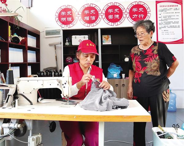 “家里的舊衣服千萬別扔,我給大家修修還能穿。雖然現(xiàn)在咱們的日子越來越好,但也應(yīng)該注意節(jié)省……”8月3日,在中心城區(qū)文明路道德書屋,志愿者趙秋霞一邊忙著為市民縫補衣物,一邊和市民聊天。