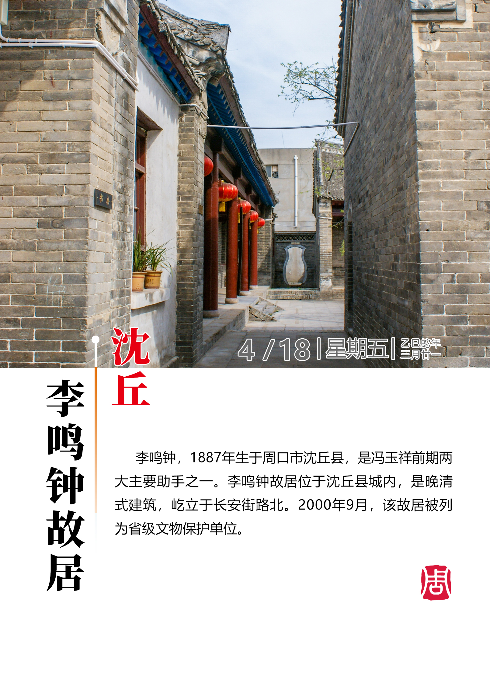 【海報圖】探尋歷史文化名城——沈丘李鳴鐘故居
