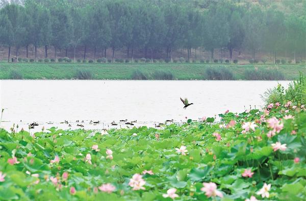 從關(guān)帝廟山門出來(lái),沿著中軸線一路向南,穿過(guò)廣場(chǎng)、商業(yè)街區(qū),記者一行來(lái)到沙潁河畔。