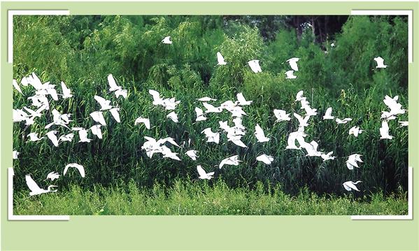 連日來(lái),大批白鷺聚集在川匯區(qū)大慶路橋東側(cè)濕地,遠(yuǎn)遠(yuǎn)望去,百鳥飛翔,一派人與自然和諧共生的景象。何延成 攝