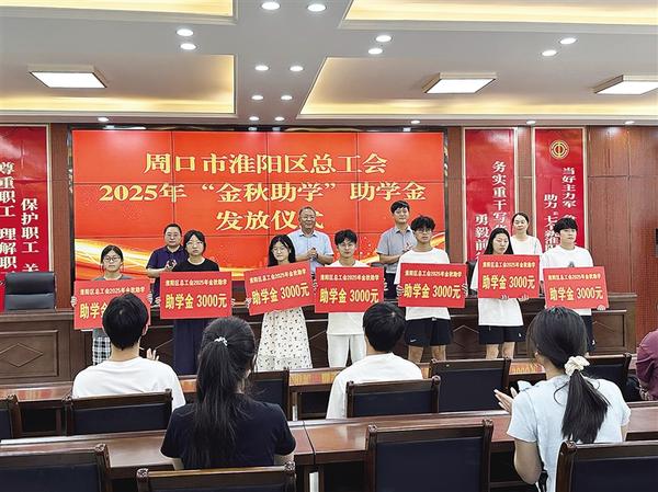 8月20日上午,淮陽區(qū)總工會(huì)舉行2025年“金秋助學(xué)”助學(xué)金發(fā)放儀式,為18名考上大學(xué)的困難職工子女每人發(fā)放“金秋助學(xué)”助學(xué)金3000元。記者 侯俊豫 通訊員 張艷榮 攝