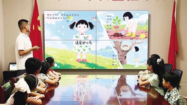 返鄉(xiāng)大學(xué)生志愿者魏柏宇向孩子們介紹珍稀鳥類的外形特征、生活習(xí)性與生存現(xiàn)狀。近日,鄲城縣自然資源局組織工作人員、返鄉(xiāng)大學(xué)生志愿者到該縣新城街道秀水社區(qū)開辦科普課堂,旨在通過生動講解與互動實踐,深化社區(qū)青少年對生態(tài)保護(hù)的認(rèn)識。記者 徐松 通訊員 陳吳陸 攝