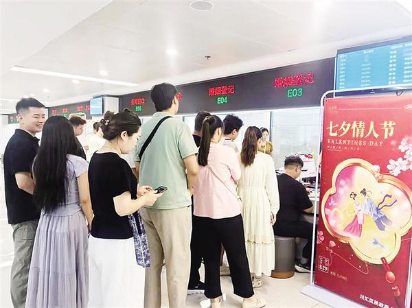 近年來,隨著人們對傳統(tǒng)節(jié)日和文化的重視,像七夕節(jié)這樣富有文化內(nèi)涵的傳統(tǒng)節(jié)日,成為新人辦理結(jié)婚登記的熱門選擇。此外,因諧音寓意美好而備受青睞的“520”“521”等“數(shù)字節(jié)日”,也保持著較高的結(jié)婚登記熱度。為積極應(yīng)對此次結(jié)婚登記高峰,確保每對新人都能高效、便捷、順利地完成結(jié)婚登記,川匯區(qū)民政局婚姻登記處提前制訂了工作預案。
