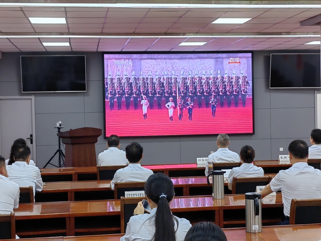 收看過程中,大家心情澎湃,感慨萬千。現(xiàn)場氣氛莊重而熱烈,大家全神貫注,聆聽習(xí)近平總書記重要講話,滿懷激動與自豪的觀看閱兵儀式的全過程。當(dāng)威武雄壯的三軍儀仗隊(duì)邁著鏗鏘有力的步伐率先通過天安門廣場時(shí),當(dāng)一個(gè)個(gè)裝備方隊(duì)展示著彰顯國家實(shí)力的現(xiàn)代化尖端武器時(shí),當(dāng)戰(zhàn)機(jī)梯隊(duì)以恢宏陣勢呼嘯掠過蒼穹時(shí),大家內(nèi)心迸發(fā)出由衷的贊嘆,為祖國日益強(qiáng)盛而自豪。
