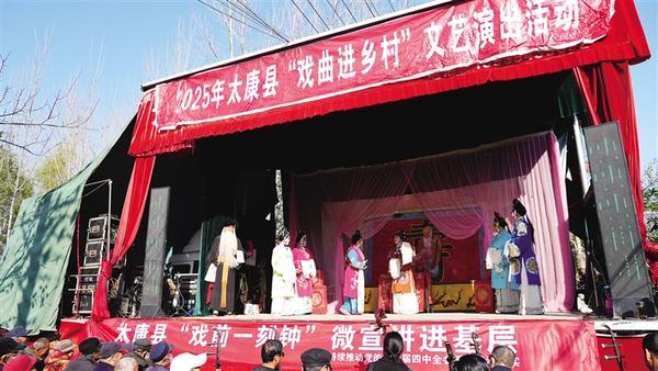 初冬時節(jié),陽光和煦。近日,太康縣道情劇團開展送戲下鄉(xiāng)活動,在轉樓鎮(zhèn)周莊村為群眾上演了《珍珠塔》《王金豆借糧》等經(jīng)典道情劇目,豐富了群眾的精神文化生活。圖為《珍珠塔》演出現(xiàn)場。記者 張洪濤 攝