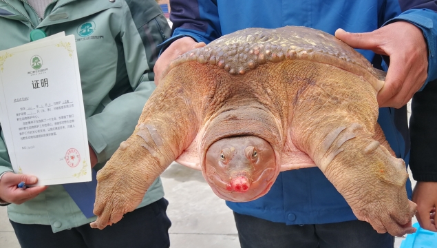 近日,鄲城縣自然資源局接到縣城市管理局公園管理辦公室工作人員救助電話,稱在人民公園岸邊又發(fā)現(xiàn)一只“大老鱉”。接到救助電話后,該局領(lǐng)導(dǎo)立即指派野生動(dòng)植物保護(hù)和自然保護(hù)地管理股工作人員前往現(xiàn)場(chǎng)救助?!?a href="http://www.zzjbh888.com/content/2021-03/23/content_925978.html" target="_blank" >[詳細(xì)]