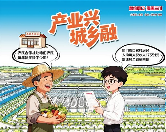 產(chǎn)業(yè)興旺是城鄉(xiāng)融合的核心動力。2024年,周口培育農(nóng)民合作社2.76萬家、家庭農(nóng)場3.95萬家、農(nóng)業(yè)社會化服務(wù)組織1.33萬個,農(nóng)村集體資產(chǎn)總額229.93億元,4893個村居均實現(xiàn)村集體經(jīng)濟收益5萬元以上,農(nóng)村居民人均可支配收入17551元、增速居全省第四位。