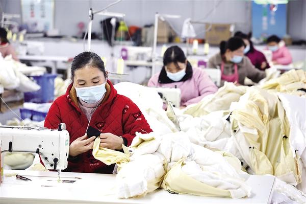 近年來(lái),淮陽(yáng)區(qū)四通鎮(zhèn)中營(yíng)子村以黨建為核心引擎,筑牢基層戰(zhàn)斗堡壘,牽頭建起現(xiàn)代農(nóng)業(yè)服務(wù)合作社、種植合作社等,走出“黨組織搭臺(tái)、企業(yè)唱戲、群眾受益”的強(qiáng)村路徑。圖為村民在村辦服裝廠工作。