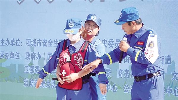 6月16日,項城市舉行“安全宣傳咨詢日”活動。活動設置警示教育片展播、應急技能演示、救援裝備展示、安全咨詢等環(huán)節(jié)。圖為項城應急藍天救援隊3名隊員演示海姆立克急救法操作流程。