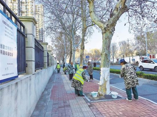 連日來(lái),市園林綠化中心組織專業(yè)養(yǎng)護(hù)人員,對(duì)周口中心城區(qū)主次干道及公園內(nèi)的樹木進(jìn)行涂白作業(yè),為它們穿上“防寒衣”,確保樹木安全越冬。