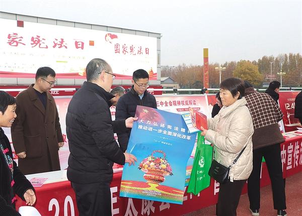 近日,太康多個(gè)單位在縣人民廣場(chǎng)舉行“12·4”國家憲法日集中宣傳活動(dòng),向廣大群眾普及憲法知識(shí),引導(dǎo)廣大群眾牢固樹立憲法意識(shí)、維護(hù)憲法權(quán)威??h長張峰,縣領(lǐng)導(dǎo)邱范卉、劉鳳芹、王洪彬、史耀閣等到場(chǎng)參觀指導(dǎo)。