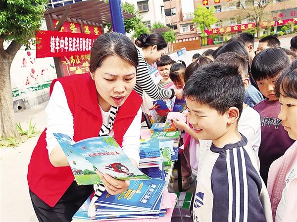 4月9日,志愿者向?qū)W生講解反邪教知識(shí)。當(dāng)天,扶溝縣科協(xié)聯(lián)合縣委統(tǒng)戰(zhàn)部、縣民宗局、縣教體局開展“鑄牢中華民族共同體意識(shí)暨民族宗教政策法規(guī)宣傳月”活動(dòng),為回族小學(xué)師生送去科普?qǐng)D書及宣傳物品2000余件。